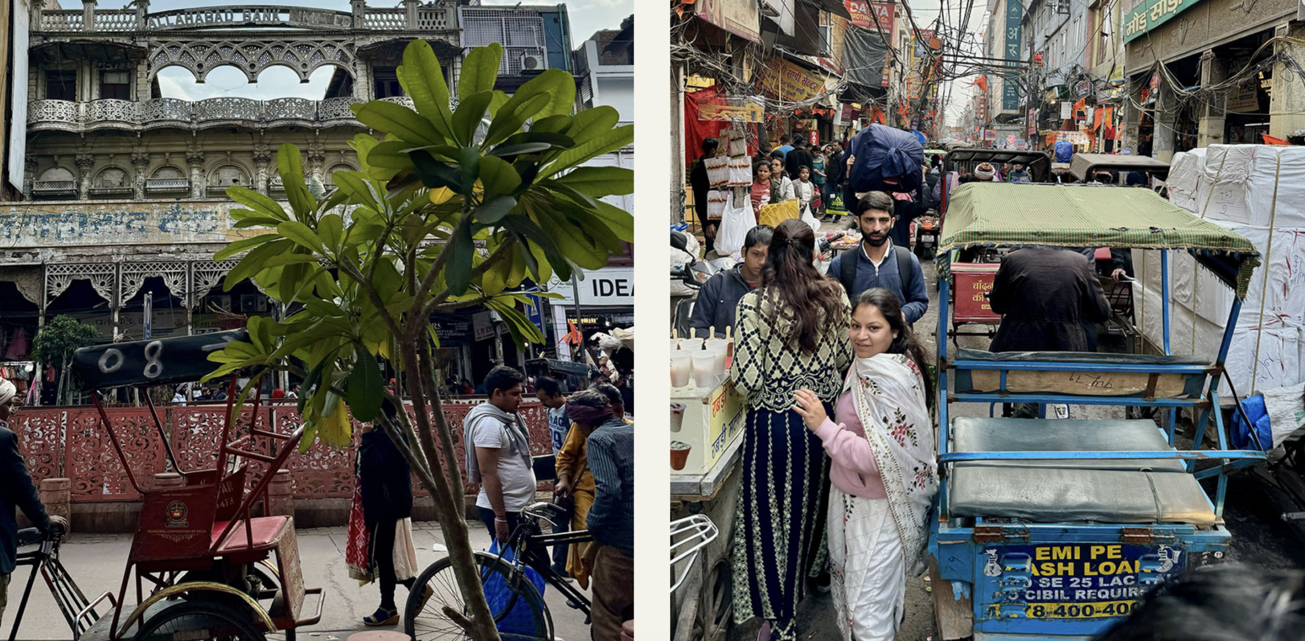 Chandni Chowk is a long street full of market stalls and vendors. We took a rickshaw ride which wove in and out along narrow lanes, motorbikes darting past in both directions. We also admired the beauty of the old buildings with paint worn away over years. It was a great first taste of the hustle and bustle of India.