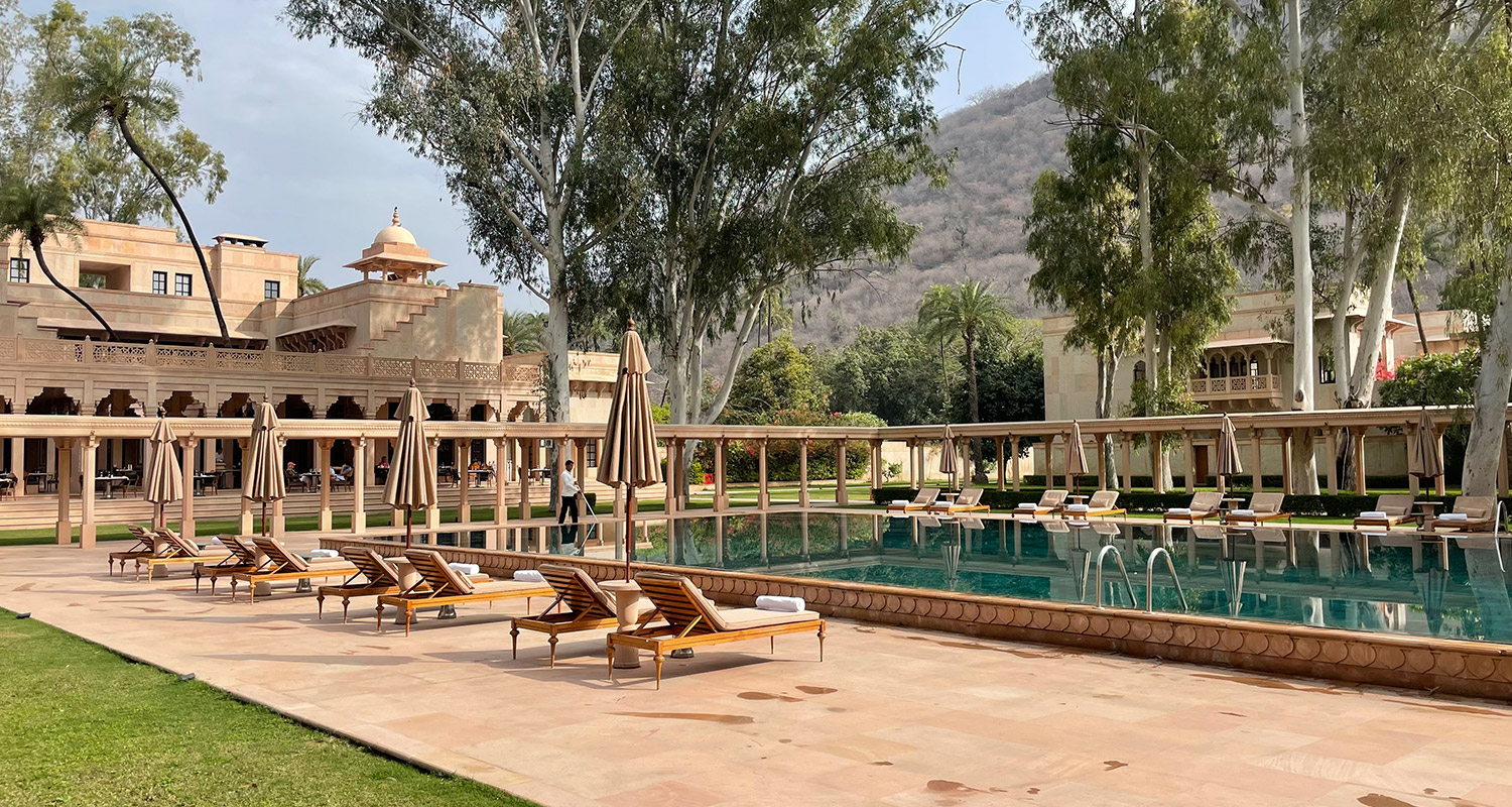 We had the luxury of a long trip, so added in three days in Alwar, largely off the beaten track, to chill out and relax for a few days at an Aman resort there. Amanbagh has a spectacular setting in the foothills of the Aravalli Hills. It is a serene oasis offering a blend of luxury and Rajasthan’s heritage, with high domed ceilings, intricate archways and expansive courtyards surrounded by lush gardens.