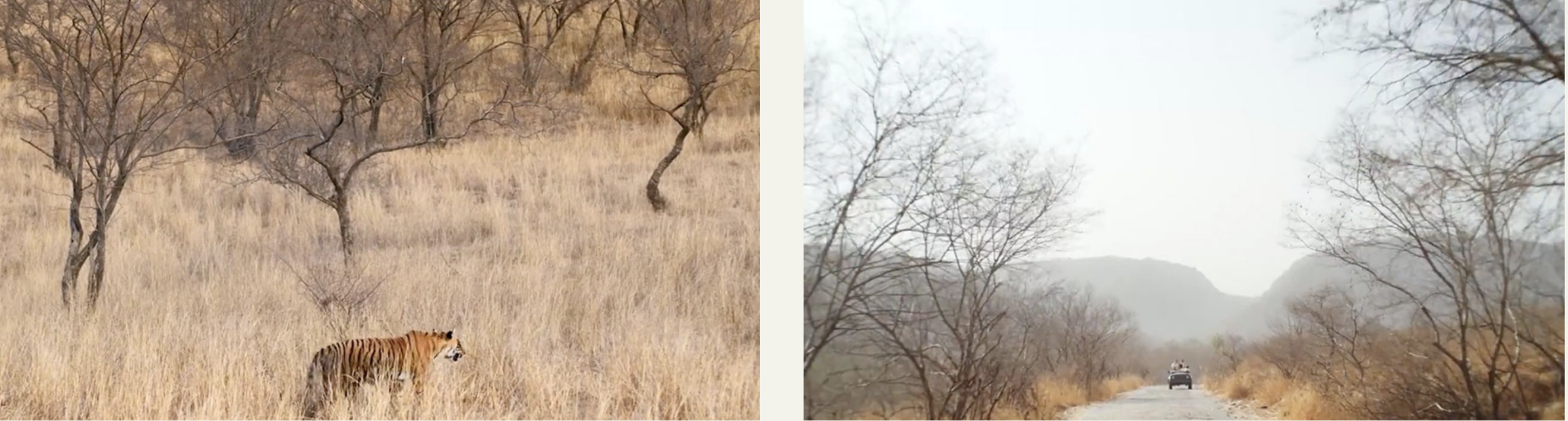 Our next drive took us to the Ranthambore National Park, a wild jungle scrub stretching across 392 km2, watched over by the imposing Ranthambore Fort. We stayed at Aman-i-Khas, an exclusive wilderness retreat with spacious, air-conditioned tents. The main activity was a series of four game drives by jeep, conducted in the early morning and late afternoon. We were finally rewarded with a sighting of the elusive Royal Bengal Tiger!