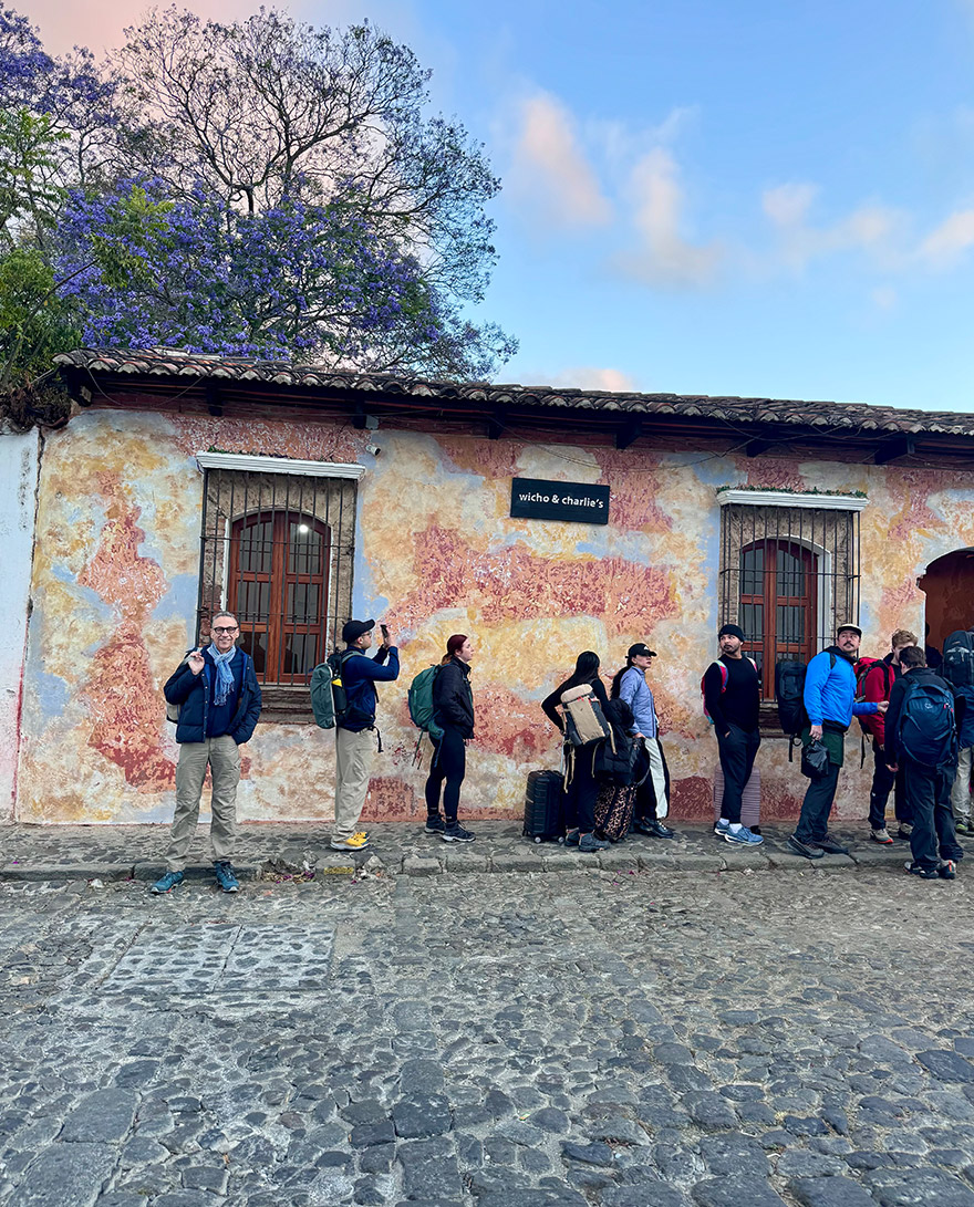 Midday: arrive back down feeling elated and happy at what you’ve seen and done. Below you see us with our group of fellow climbers. Then drive to Antigua.
