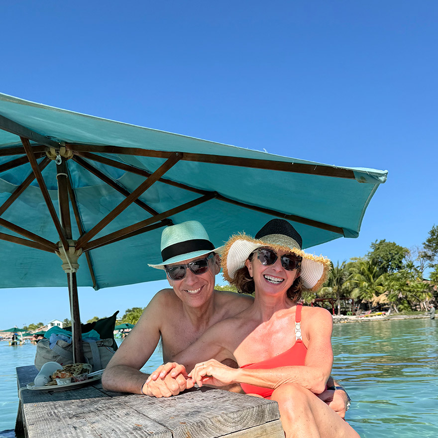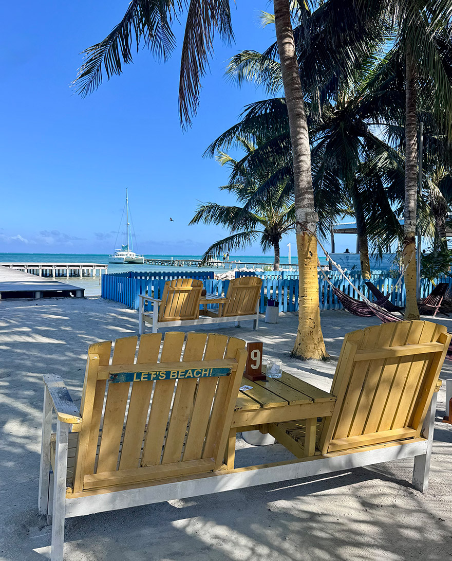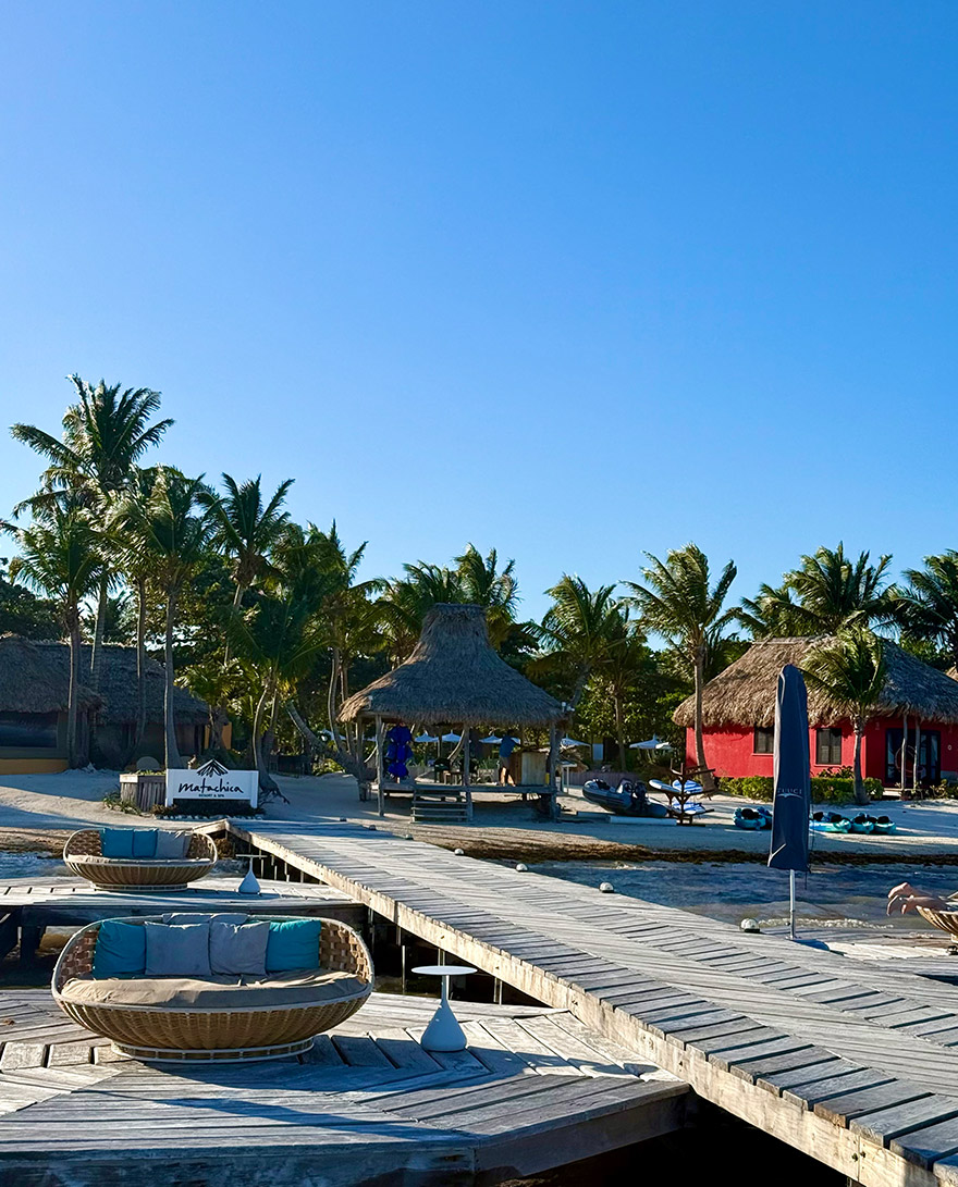 One practical note: like other parts of Belize (and Mexico too), the coastline can get lots of seaweed washing up on the shore, making the water look brown. We knew this going in, so we spent our time by the pool and on the pier daybeds.