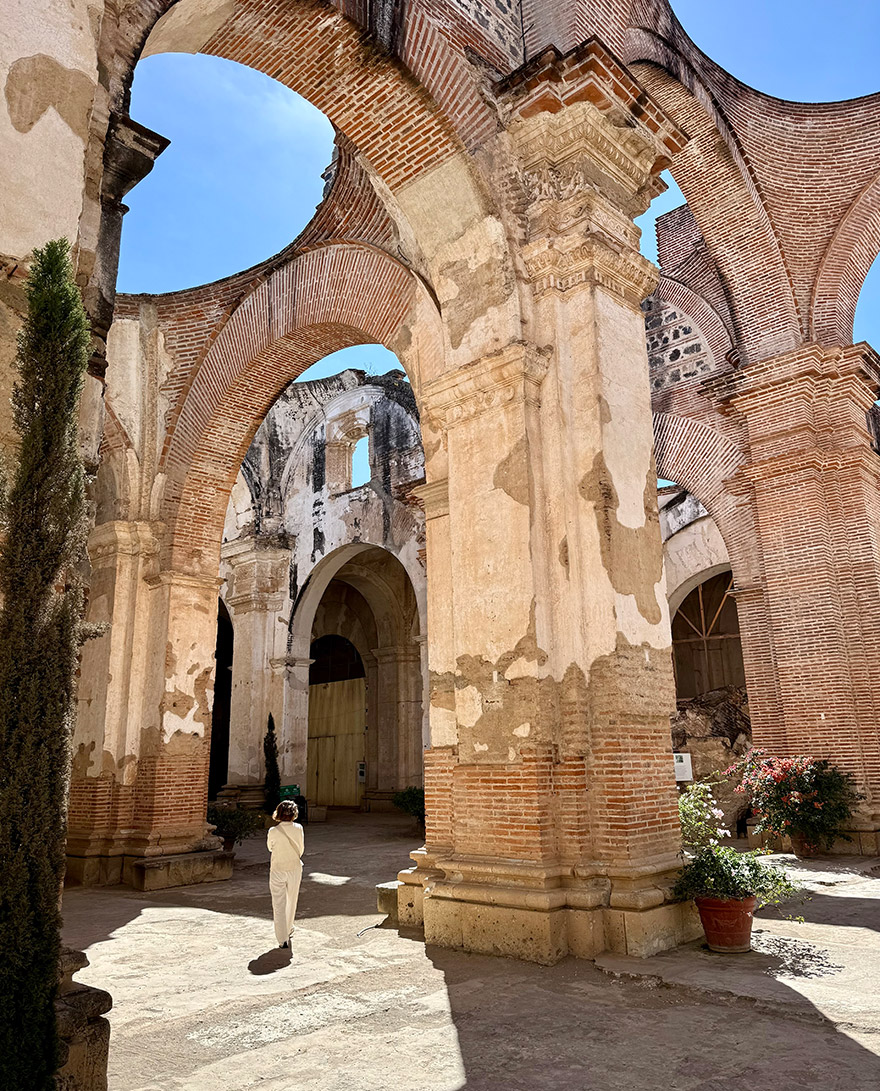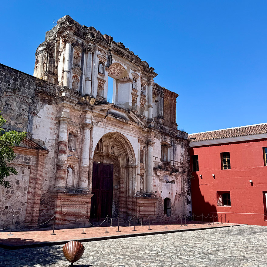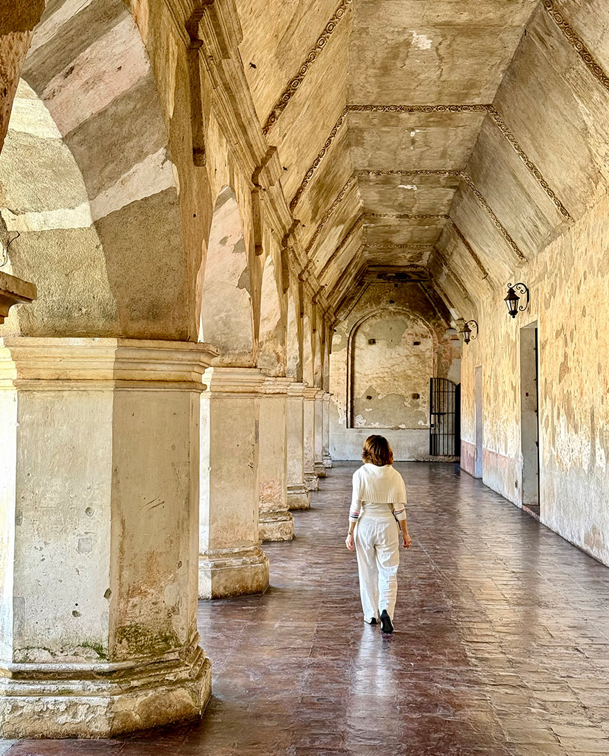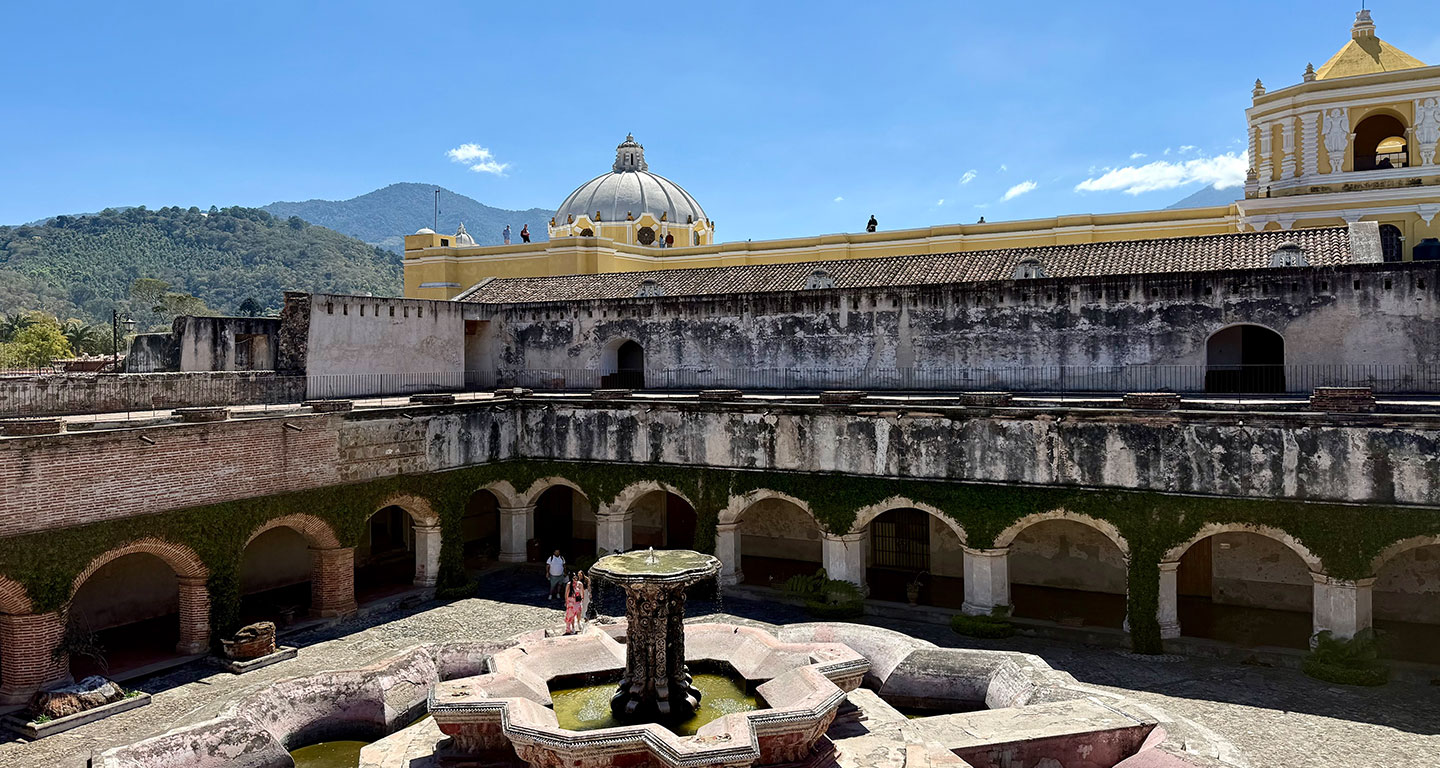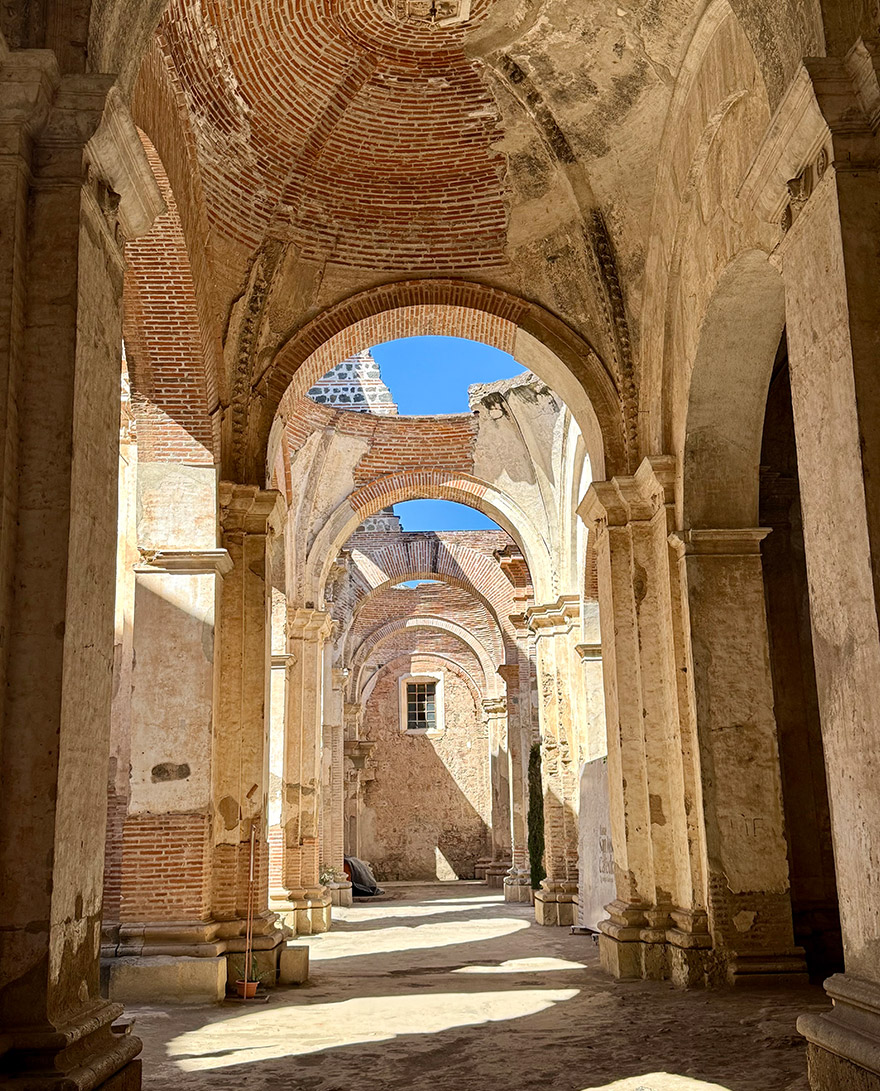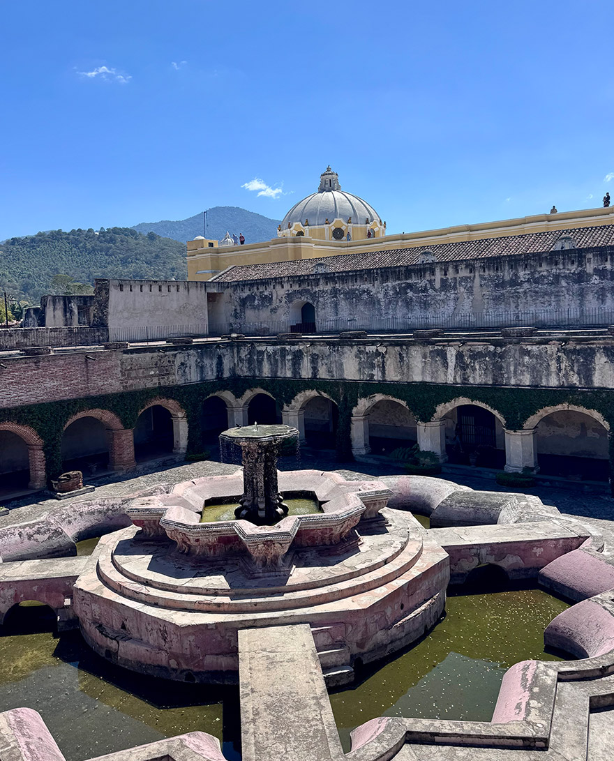 Next stop is Santa Clara Convent, one of Antigua’s most atmospheric ruins, which is a short walk southeast from Parque Centrale. Built for nuns of the Order of Saint Clare, its high walls and cloistered layout were designed for strict enclosure. Earthquakes left it in ruin, but the scale and elegance remain — arched corridors, open courtyards, and a softness to the light that makes it feel almost serene. There are also beautifully maintained gardens to wander through.