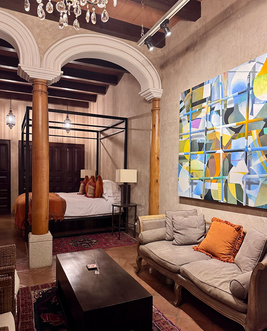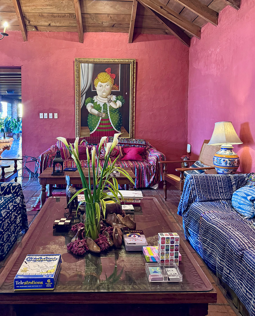 We chose to stay at the San Rafael as it looked authentic and was also centrally located. It’s a meticulously preserved colonial house that blends old-world charm with modern amenities. The hotel exhibits works by contemporary international and Guatemalan artists, as well as museum-quality antiques. It’s right next to the Arco de Santa Catalina and walking distance from the sights, and also lots of coffee shops and restaurants.