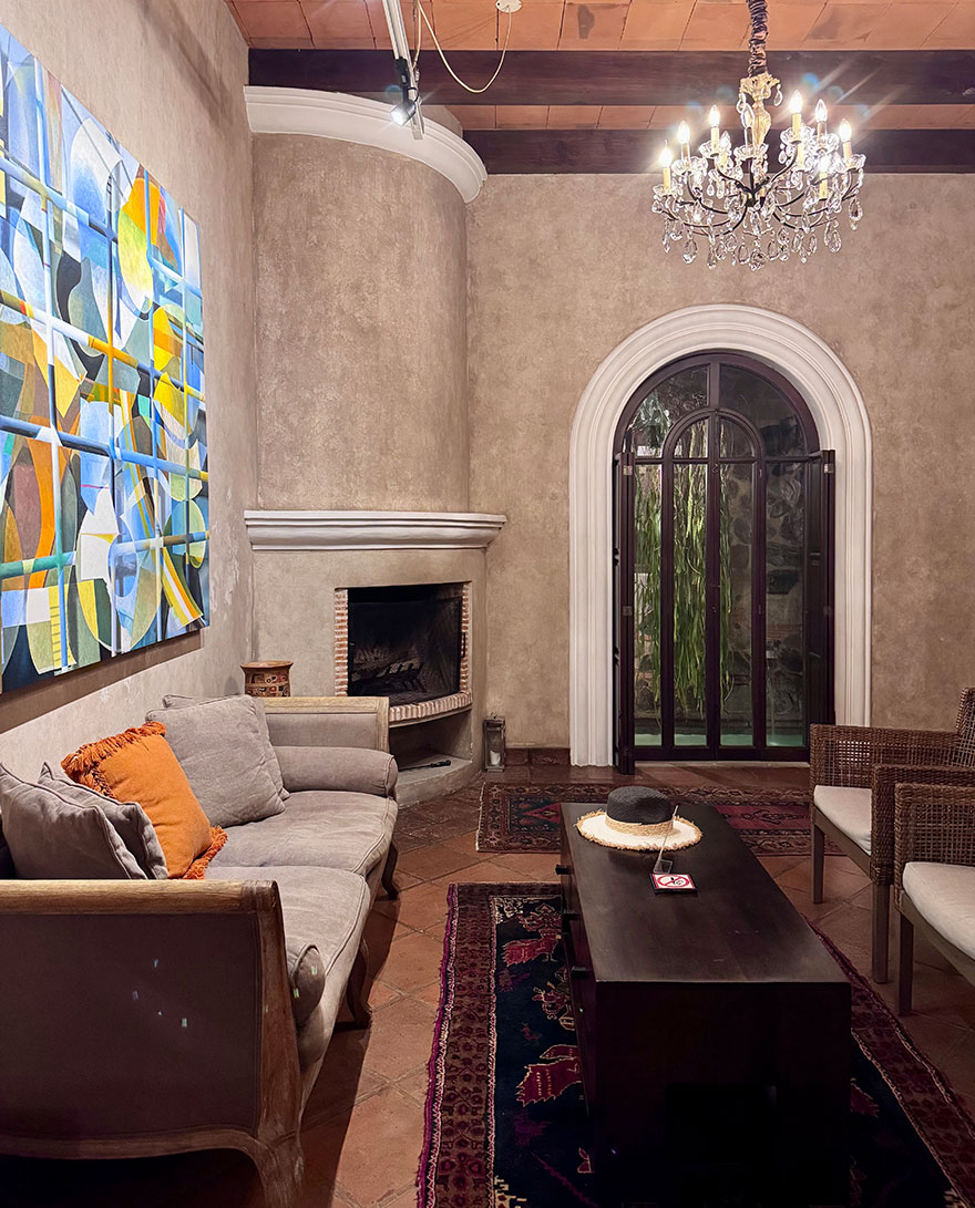 With only seven rooms and suites, it feels intimate and private. Rooms are comfortable rather than showy, with calm colours and the sense of really being in Antigua. We stayed in Santa Rosa, a King Premier Suite featuring Moorish detailing, windows facing the courtyard and a sitting area. Outside there was a pretty water feature. Inside tip: during our trip, it got chilly at night, so ask the hotel to light the log fire to warm you up!