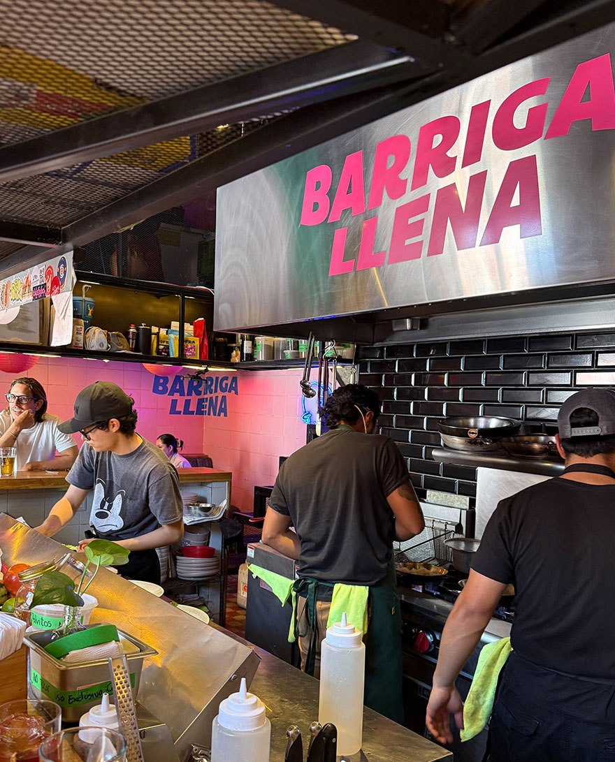 Barriga Llena is fun, informal, and perfect for a low-key lunch or an easy dinner. It’s a hole-in-the-wall style spot with walk-ins only and has a buzzy, casual feel. The pork dumplings are legendary: slathered with pickled veg and chimichurri. They’re also famous for their fried chicken. We recommend sitting at the bar to see the chefs in action and get the full experience.