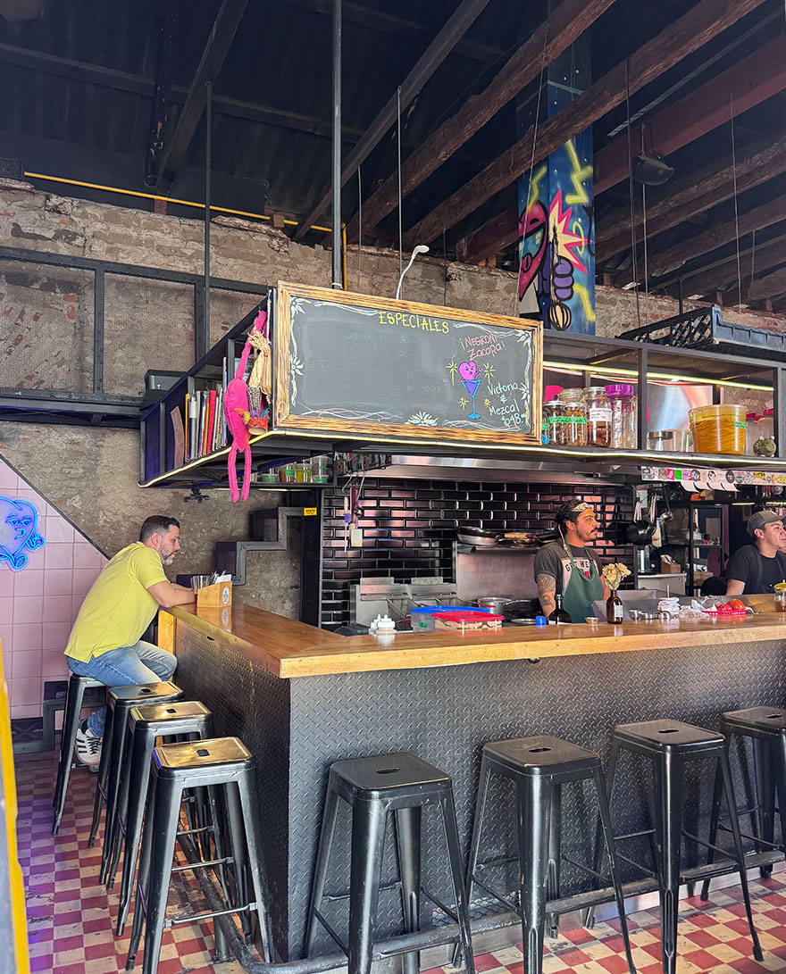 Café No Sé is boho, candlelit and a little bit chaotic in a good way. You duck through small doorways into different rooms and end up at the bar sampling mezcal (including the bar’s on-brand called Ilegal Mezcal).