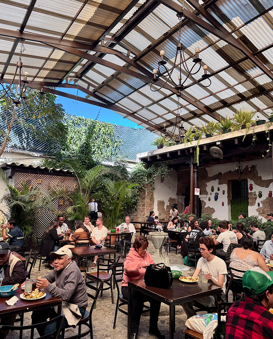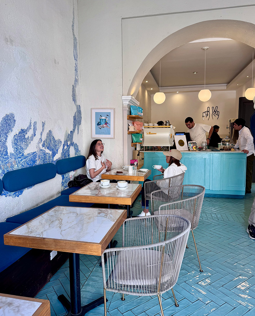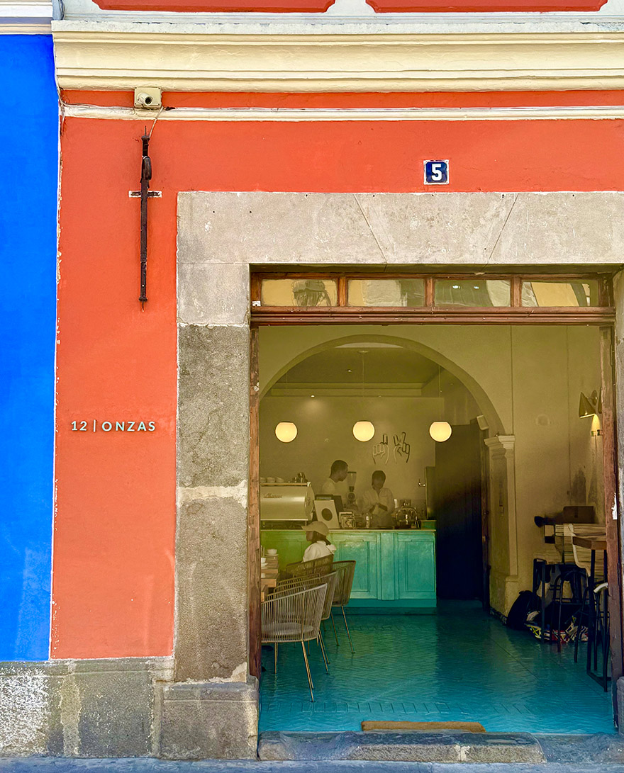 Named after the 12-ounce serving size, 12 Onzas’ award-winning baristas using coffee from their nearby family finca. The front space is stylish in duck egg blue with the beautifully aged walls we loved in Antigua. At the back, there is an open-air courtyard.