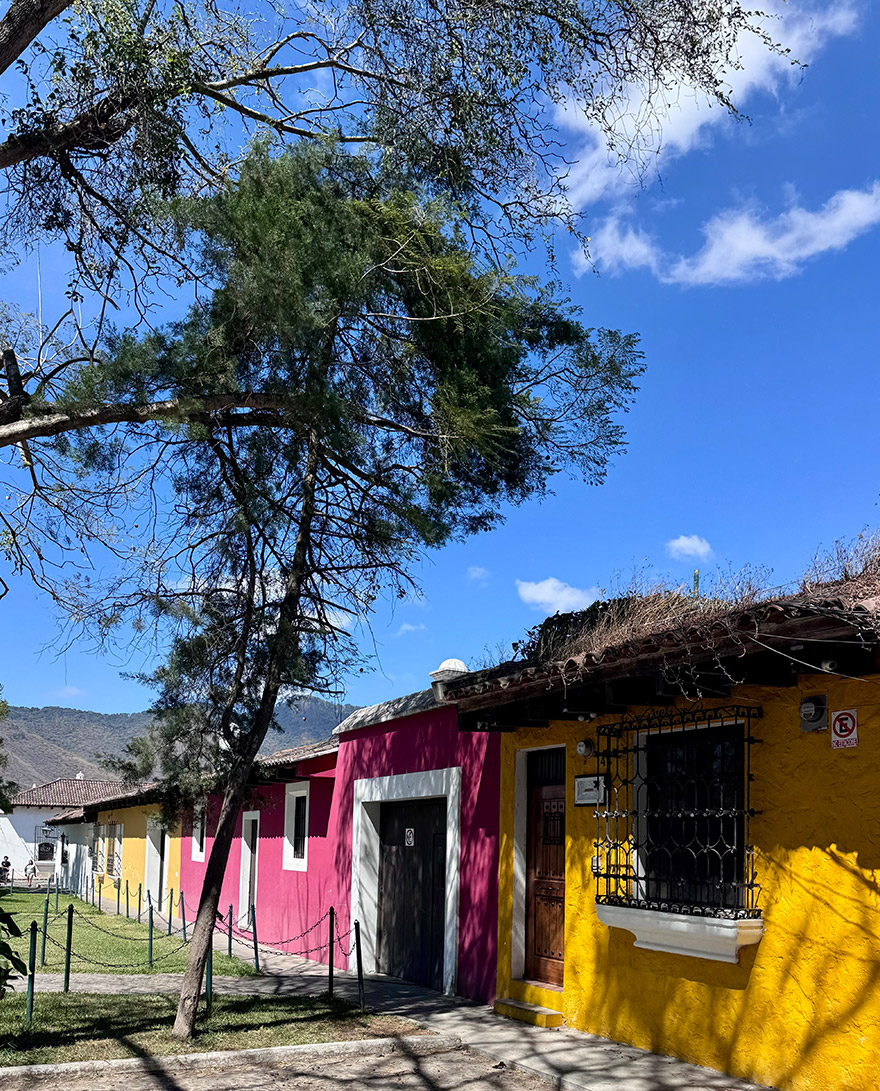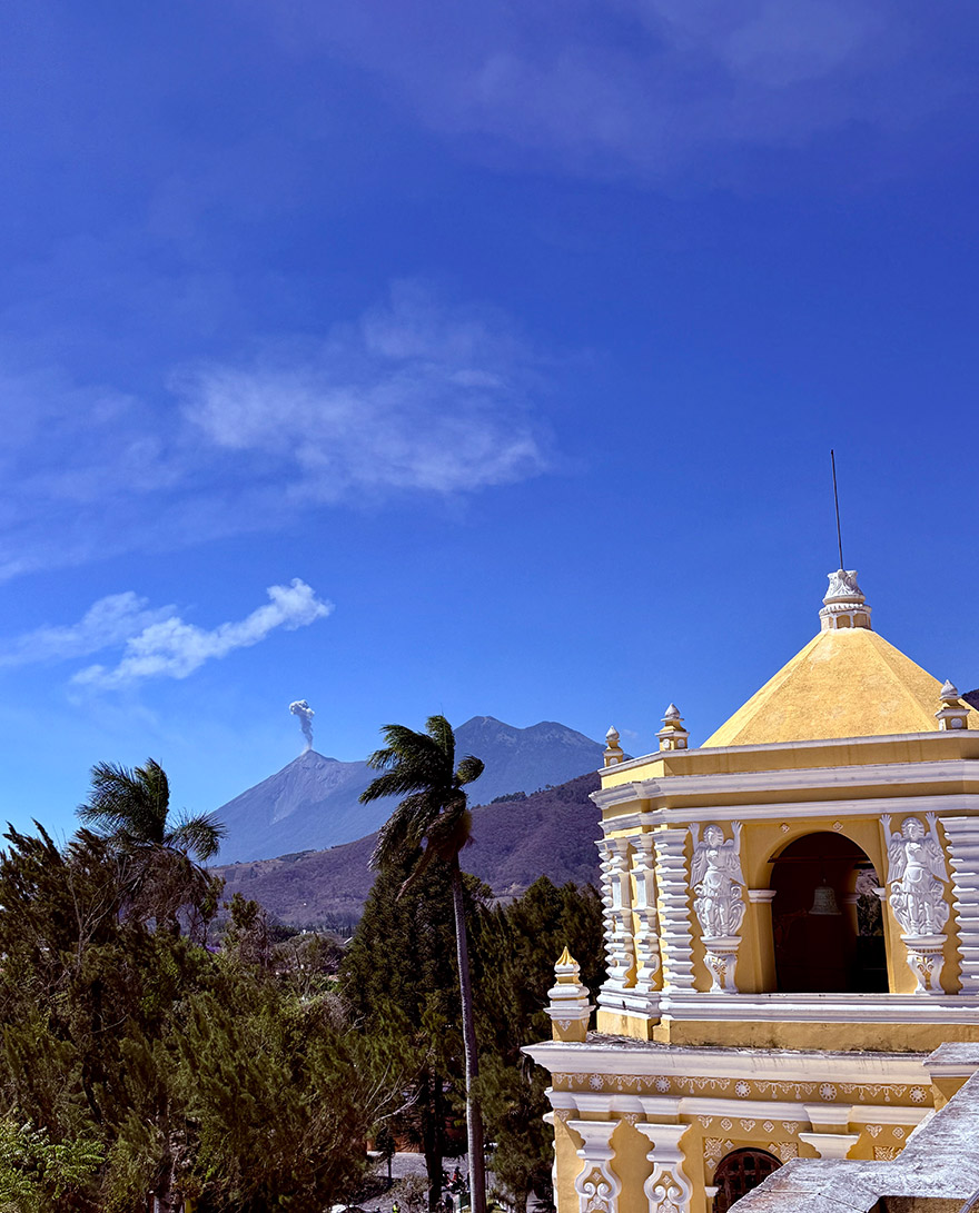 Antigua packs an incredible amount into a small, walkable city. You’re never far from a crumbling church façade, a courtyard hidden behind a heavy wooden door, or a street corner that suddenly opens to a volcano view. The city’s palette is part of the magic too: custard yellows, deep reds and soft pastels, all slightly weathered in a way that makes it feel lived-in rather than polished.
