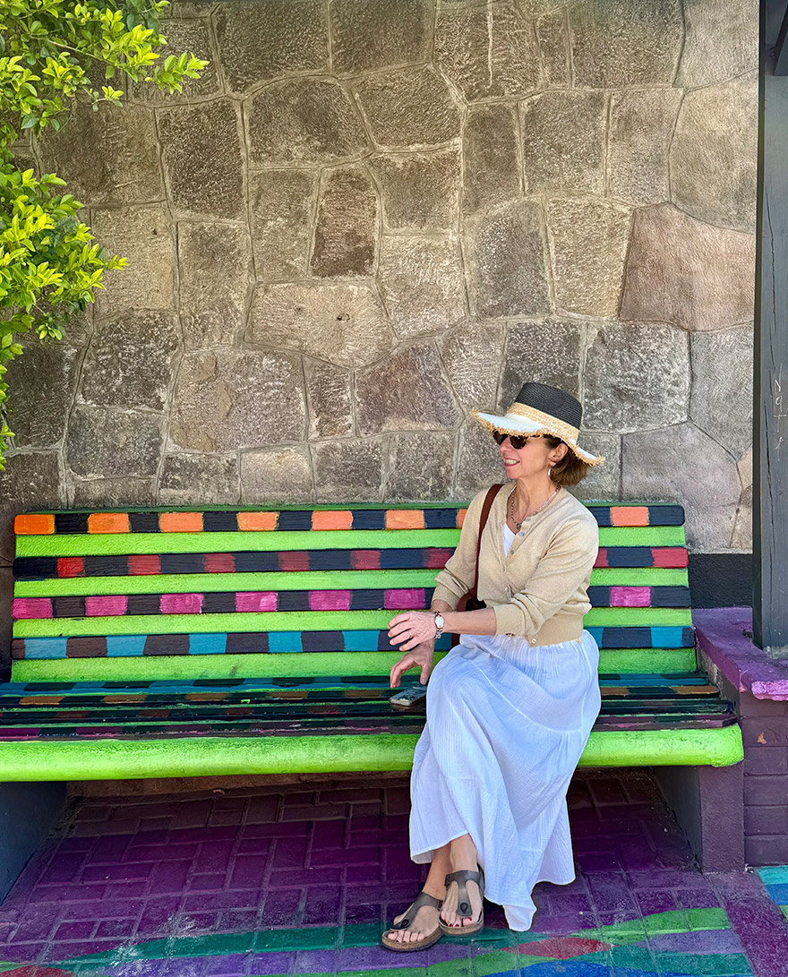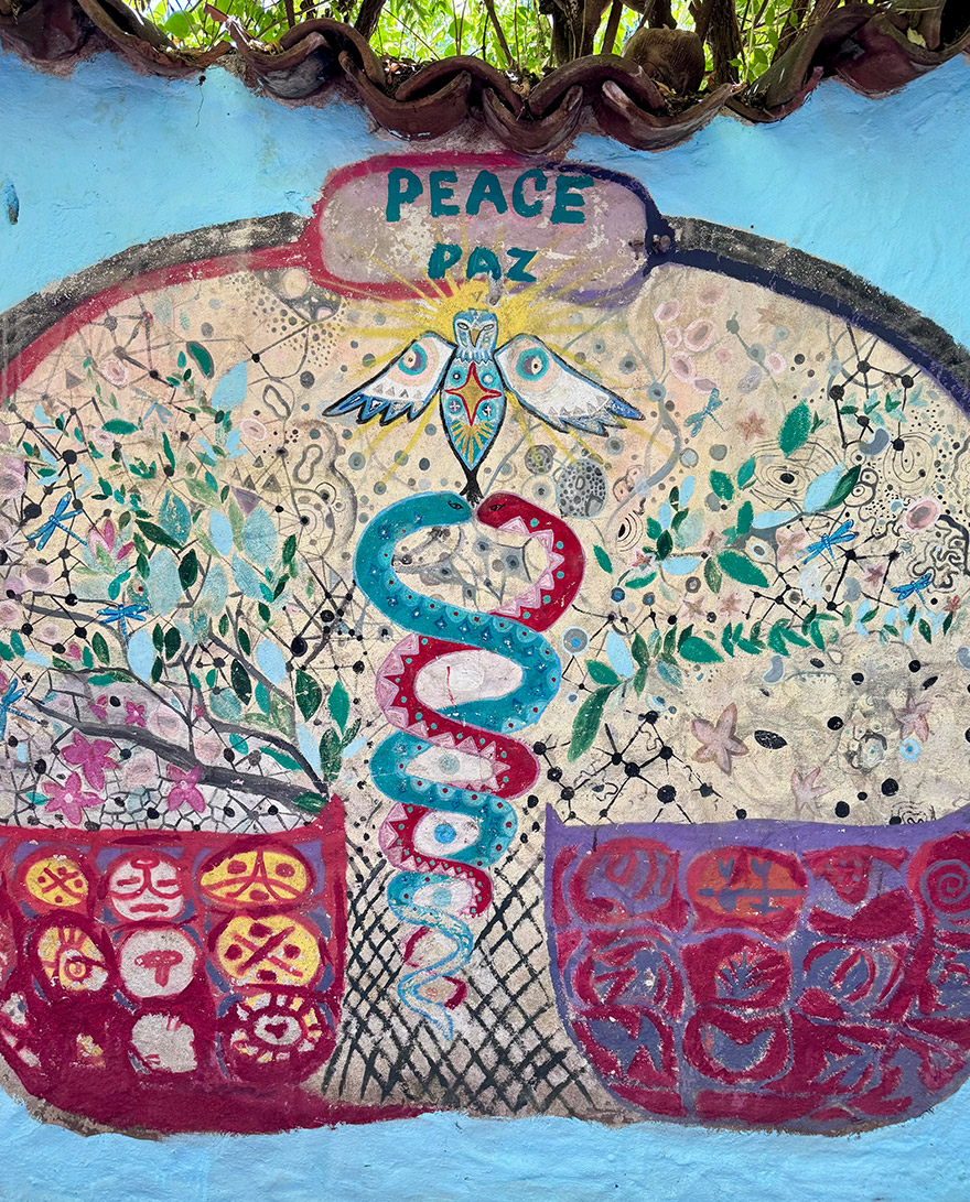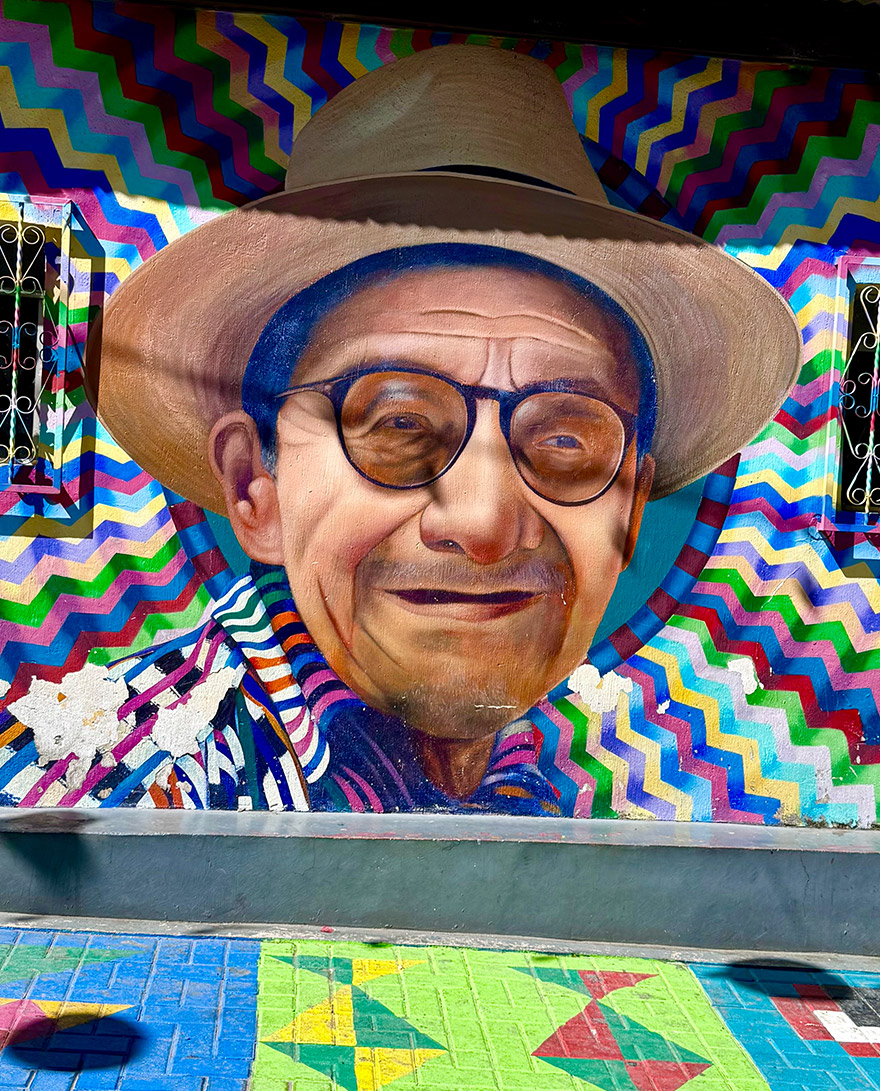 Much more interesting was “Calle de los Sombreros”, where murals feel more local, and the whole village infrastructure becomes part of the gallery – painted benches, bright corners, and public spaces that look like they’ve been designed to make people smile.