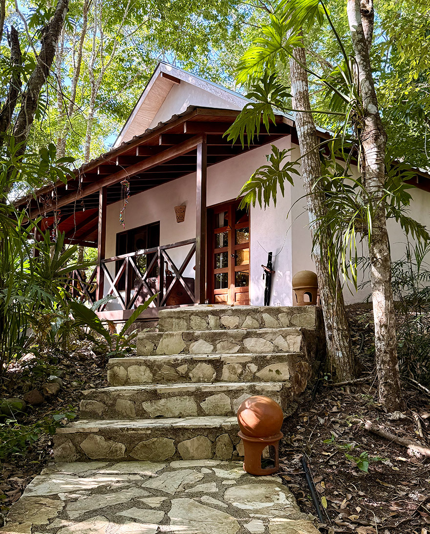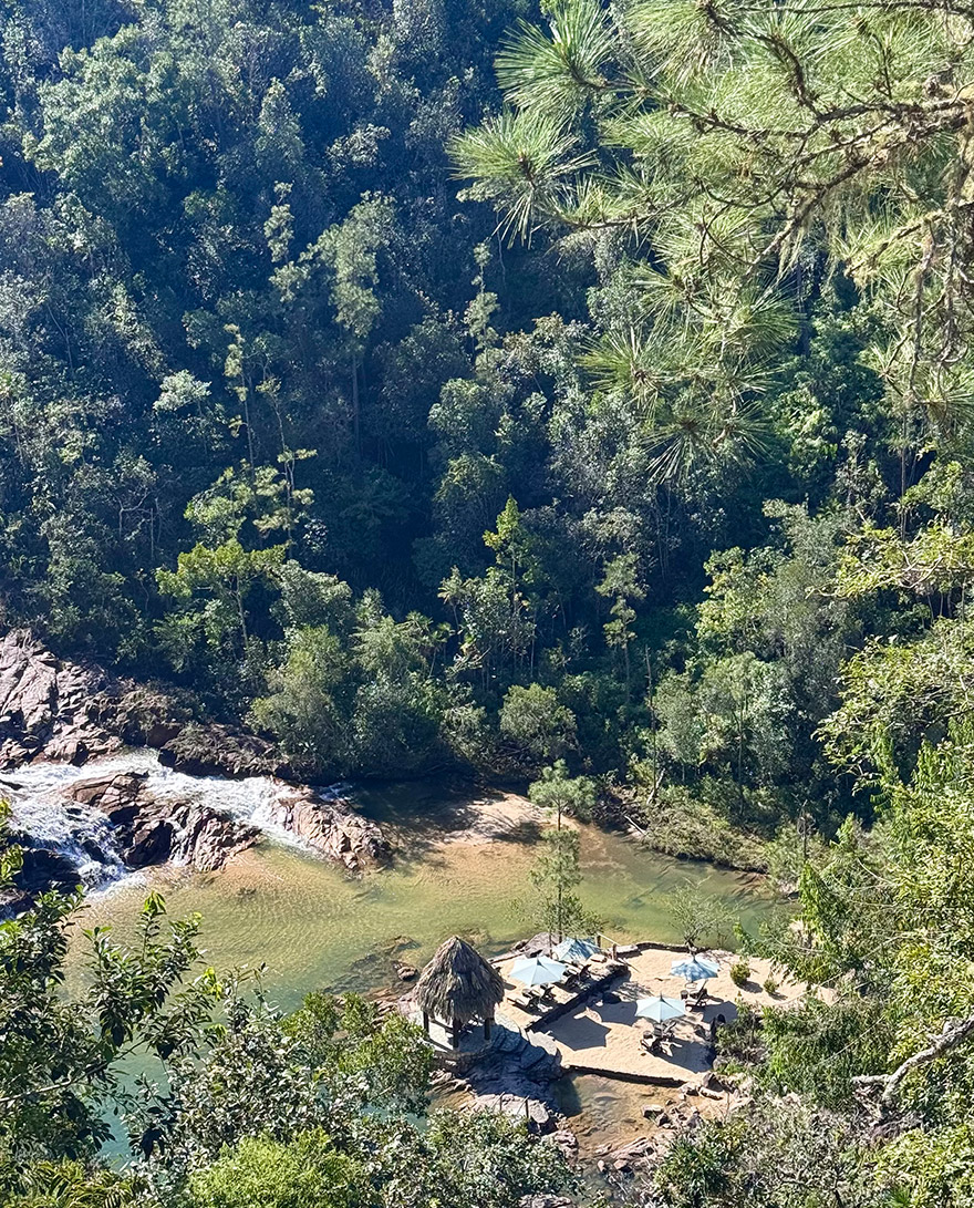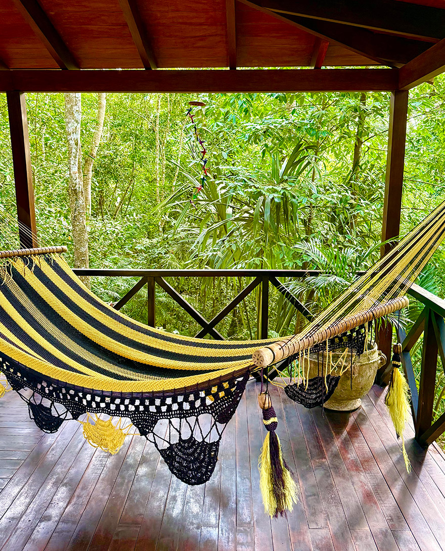 Gaïa is set high in the Mountain Pine Ridge forest reserve, perched near the Five Sisters waterfalls, surrounded by trees and the sound of rushing water. It’s the kind of place where you’re properly in nature, while still being looked after beautifully. The common areas are colourful and contemporary, with terraces that are made for sundowners after a day out exploring. The lovely gardens are all manicured and looked after perfectly.