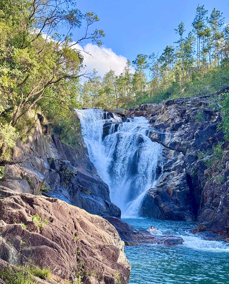Big Rock Falls is a great half-day outing: a manageable walk through the forest, then a powerful cascade with a wide swimming area at the bottom. It’s the sort of place where you arrive planning “a quick look” and end up staying for ages – swimming, sunning on rocks, and watching people leap in.