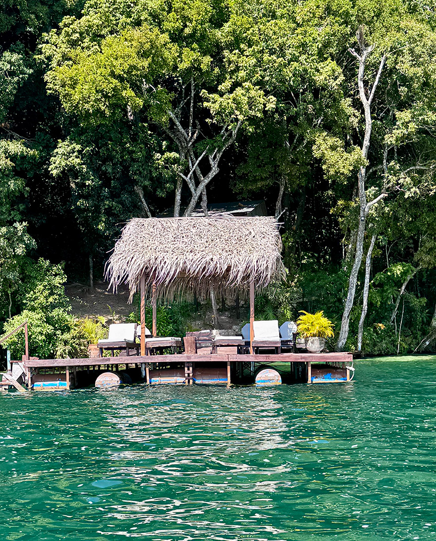 Topoxté is small but memorable because you reach it by boat, and arriving by water makes it feel like a discovery. Island ruins emerge from the jungle in full Indiana Jones mode. We had lunch and came back to finish the day with a sundowners at a rustic restaurant by the lake.