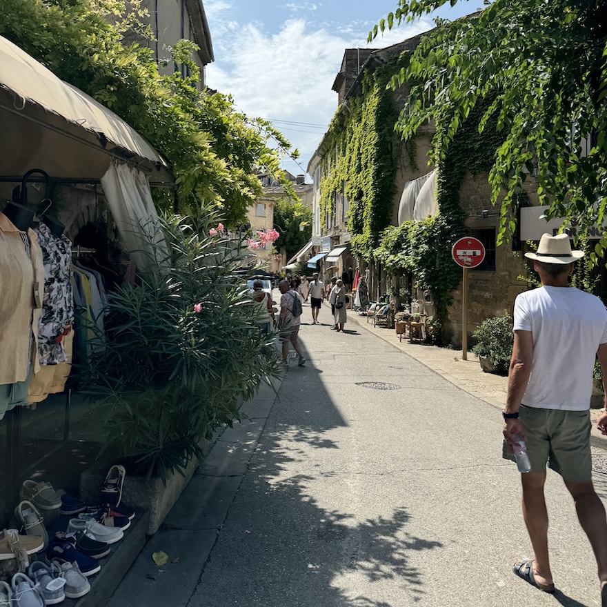 Saignon is the village that holds our hearts most dearly, as it’s where we owned our house for ten years. Nestled high on a hill, it’s a small but charming village that feels untouched by time. The fountain in the main square, shaded by ancient plane trees, is the heart of Saignon. The village is intimate, so a few hours here is all you need to wander its winding streets, check out the few boutique and then sit down for a coffee, glass of rosé or a cold beer.