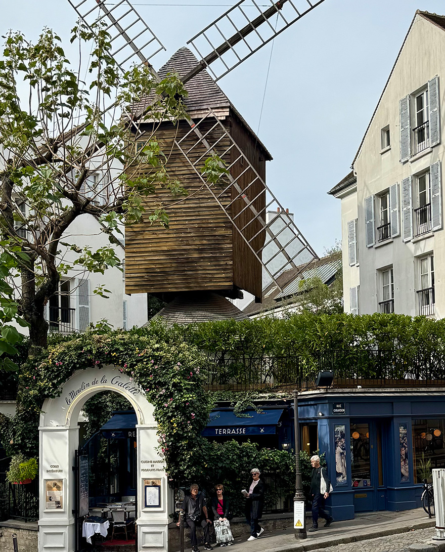 Turn right, walk a bit and turn left into Rue Girardon to see Le Moulin de la Galette. This perfectly preserved windmill was built in the 17th century and is now a restaurant. A bit further on is the ivy-covered Théâtre Lepic. Carry on along Rue Girardon, stopping off at Les 5 Marches, https://www.5marches-montmartre.com, a lovely café with a little terrace where we had a cup of tea and a nice slice of cake.