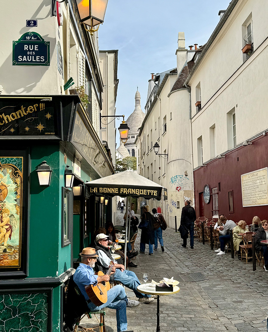 A short walk down takes you to the corner of Rue de Saules and Rue Saint-Rustique, where there are often musicians playing. A bit further east is Place du Tertre, which is lively and has good views of the Sacré-Coeur but is now very touristy. It’s where a lot of the caricaturists hang out if you’re interested in getting a caricature done.