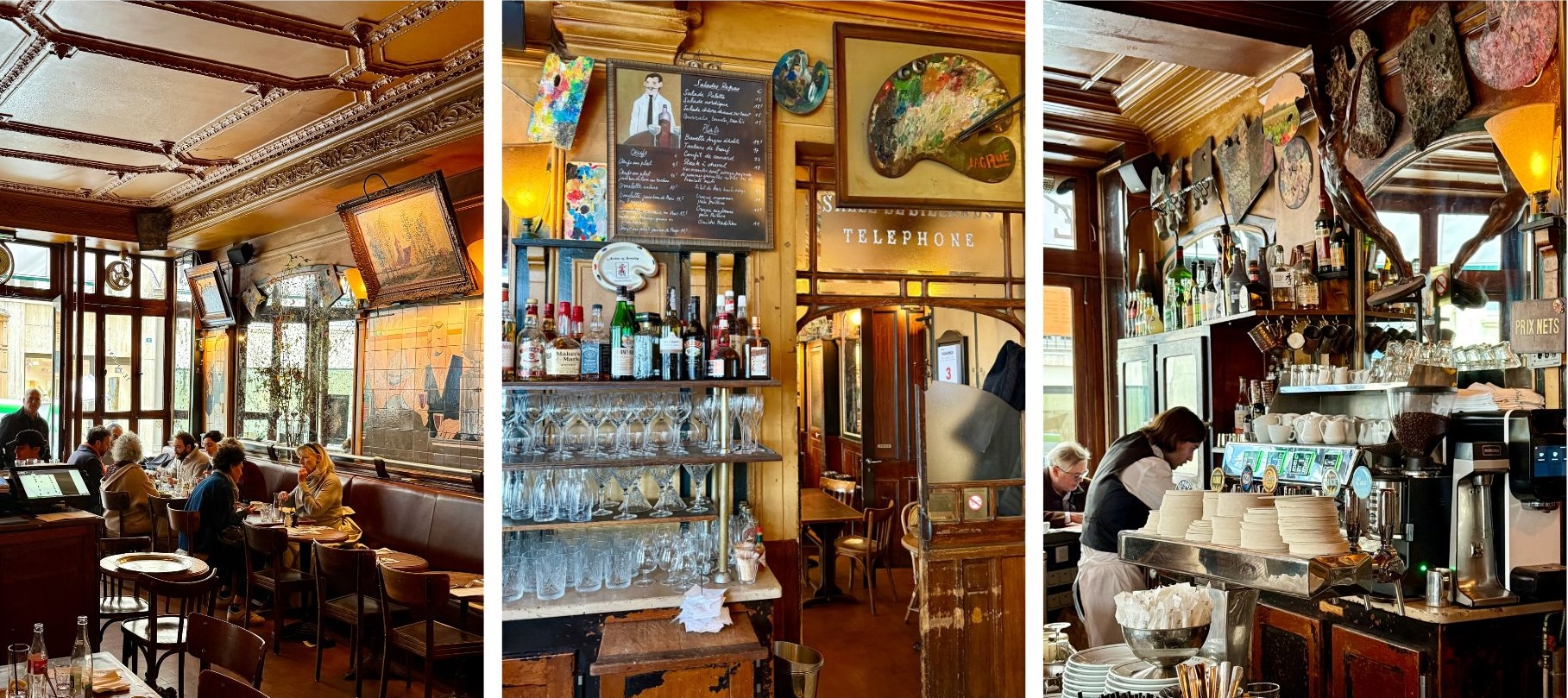 Turn right here to head north on Rue de Seine, wandering past galleries, antique shops and chic boutiques. On the way up at nº 43 is one of favourite café spots for lunch, La Palette. We started going here when we first lived together in Paris in the 1990s!. It has nice little terrace and inside, as the name suggests, it has lots of colour paint palettes.
